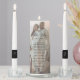 Modern wedding unity candle featuring a simple design with your names in an elegant script typography and a Corinthians Bible verse or your own quote in a minimalist sans serif font over your favorite photo. The design has a sheer overlay to allow the text to show up over your picture and may be removed in the design editing tool. This chic wedding unity candle works well with any style of wedding.