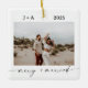 This minimalist Christmas holiday ornament features your wedding photos and modern calligraphy. A beautiful keepsake for your first Christmas as a married couple!
