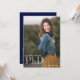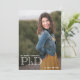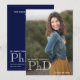 A photo PhD graduation announcement that includes your name, class year, a customizable message, and more. The front of the announcement shows a vertical photo. The other side has a blue background with white text. Simply swap out the photo, customize the words, add the announcement to your cart, and let everyone know that you accomplished something big.