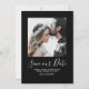 Minimalist Photo Save the Date Announcement with a fresh and simple square photo cutout design in black. Add a photo and your wedding details to customize. Thin white stripes adorn the back of the invite. Background color on back side of invite may be changed to complement the photo or to add your wedding color.