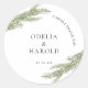 Minimalist Pine Tree Branch Winter Wedding Classic Round Sticker