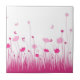 Minimalist Pink and White Poppies Meadow Floral Ceramic Tile