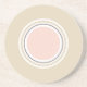 These round coasters feature a minimalist geometric design in beige, pink, and white.