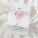 Celebrate the upcoming arrival of a sweet baby girl with this timeless and elegant baby shower invitation. Featuring a pink bow and minimal serif typography, this design blends classic charm with modern minimalism. The clean white background allows the delicate details to shine, creating a refined look that’s perfect for a traditional, chic, or feminine baby shower theme.