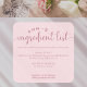 Minimalist Pink Ingredient List Bakery Product Square Sticker