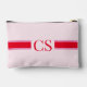 Minimalist Pink Red Stripe Initial Monogram Accessory Pouch