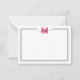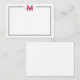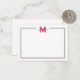 Simple Pink and White Script Calligraphy Name Monogram Note Card. Add a touch of girly elegance to your stationery with this chic and minimalist notecard. Featuring a crisp white background, it showcases a pink initial at the top center. The notecard is framed with a thin black border around the front, offering a refined and modern touch. Perfect for personal notes, thank you cards, or special occasions like birthdays, quinceañeras, bat mitzvahs, bridal showers, and more, this notecard is ideal for anyone who loves a feminine, stylish design. Whether as a gift or for personal use, it blends simplicity and elegance, making it a timeless addition to your stationery collection.