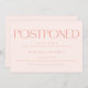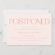 Postponing a big event like your wedding can be stressful, but you can still look stylish with this modern and minimalistic change of plans template card. It says "postponed" in stylish and noticeable font at the top followed by your event information and regrets. The background is peach.