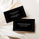 A minimalist professional business card design featuring a thin white rectangular border on a black background. Personalize it with your name and title in white sans serif and italic text, separated by a thin white line. On the reverse side, add your name, title, and contact details in white on a black background with a thin white border.