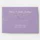 Simple, elegant, minimalist lavender purple 5x7 envelope for wedding invitations with return address, modern calligraphy script and silver rope heart.
