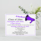 This horizontal format high school class reunion invitation design features a minimalist purple and white design. Add your information to the template fields or click customize to select a typeface color, size, and style your prefer.