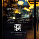 Minimalist QR Code Business Opening Hours White Window Cling