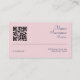 Minimalist QR code Business Card design. Featuring an abstract pattern with a focus on pastel colors, specifically coral and light terracotta hues. Ideal for various small businesses, including but not limited to hair stylists, designers, and makeup artists. This card offers a modern and clean aesthetic, perfect for professionals seeking a simple yet eye-catching way to share their contact information. The QR code integration allows for easy scanning and instant access to websites or other online profiles, enhancing networking opportunities for your business.