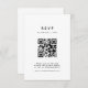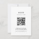 This wedding RSVP card features a sleek and minimal design with a white background, simple black text, and a prominent QR code in the center. Its clean layout makes it easy to read and adds a modern, practical touch while maintaining an elegant look.