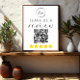 This sleek sign seamlessly integrates into your business setting with its minimalist design. It prominently displays a scannable QR code, making it effortless for customers to leave reviews and share their experiences with your business. Whether it's on Google, Yelp, or another review platform, this sign simplifies the process.