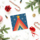 Minimalist Red & Blue Retro Groovy Christmas Tree Holiday Card