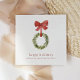 A minimalist red bow christmas wreath holiday party napkin. This christmas party napkin features a rustic greenery christmas wreath with a red bow. All text can be customized with any wording of your choice.
