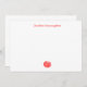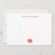 Minimalist white flat note card with your name and chrysanthemum in red.