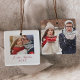 This minimalist red couples keepsake photo ceramic ornament is the perfect simple Christmas tree decoration. The design features classic red and white typography paired with a rustic yet elegant script font with hand lettered style. Personalize the front of this keepsake ornament with a photo, your names and the year. Personalize the back with another photo.