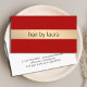 Minimal customizable business card template with red background and faux gold stripe. Elegant and minimalist design. Perfect for beauty salon, hair stylist, hairdresser.