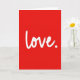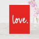 This card shows a solid deep red background with the single word “love.” centered in white. The letters look like quick brush strokes, with a tall “l” and smooth links between the “o,” “v,” and “e.” A small period sits right after the word, making it feel like a clear, confident statement. The white text stands out strongly against the red, so your eyes go straight to the message. There aren’t any other objects or characters, which makes the design feel focused and honest. Giving this card can feel meaningful because it says what you mean without extra explanation, whether it’s for a partner or someone you care about 🥰. It’s a simple way to put love front and center on Valentine’s Day ❤️, and it’s easy to share Valentine’s Day sentiments with someone important.