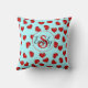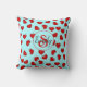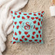 Minimalist Red Hearts Pattern on Blue Custom Name Throw Pillow