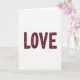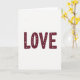 This card features the word “LOVE” centered on an off-white background in deep maroon letters. Each letter is filled with small white doodles like tiny hearts, dashed lines, repeating V-shapes, and simple geometric marks. The “L” even includes a little question mark detail, which makes it feel sweet and a bit curious. The lettering is thick and easy to read, and the white patterns look like they were drawn right onto the letters. There isn’t any other scene or character—just the word standing on its own, which keeps the focus on what you want to say. The strong maroon-and-cream contrast makes the message feel warm and steady, like a quiet reminder of how much someone matters 🥰. It’s meaningful because it says a lot without needing extra words, and it works for romance or close friendship ❤️.
