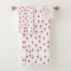 Minimalist Red & Navy Scandi Floral Pattern Bath Towel Set