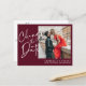 Modern casual script photo wedding change the date with a hand written style typography, all colors are editable, add your couple photo with simple and minimalist red burgundy to announce the postponement of your wedding and new plans