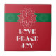 Minimalist Red Poinsettia with Love, Peace, Joy Ceramic Tile