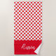 Minimalist Red Polka Dots Pattern Custom Name Beach Towel