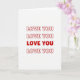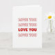 This card keeps things simple with a white background and the words “LOVE YOU” repeated four times in a neat vertical stack down the center. The text is bright red, so it stands out right away and feels full of affection ❤️. The first, second, and fourth “LOVE YOU” lines are drawn as red outlines, so the letters look light and airy. The third line changes to fully filled-in red letters, making that one feel like the strongest, most direct “LOVE YOU.” All the words are in all caps with a straightforward letter style, and the spacing between the lines makes the layout feel calm and easy to read. With no other pictures or objects, the focus stays on what you’re trying to say, which can feel really honest and meaningful to give 🥰. It’s a sweet way to share Valentine’s Day sentiments with someone you care about.