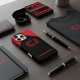 Upgrade your daily carry with this bold Red and Black Retro Monogram iPhone Case. Featuring a high-contrast minimalist design, this case combines a vintage aesthetic with modern personalization. The striking vertical color-block pattern provides a sleek, professional look that stands out in any setting.