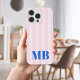 Minimalist Retro Pink Blue Striped Monogram Case-Mate iPhone Case
