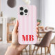 Create your own personalized monogram iPhone case featuring your initials in modern minimalist typography and retro pink stripes background.