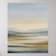 This minimalist abstract landscape captures the serene beauty of rolling hills or a coastal marshland under a soft twilight sky. Layered horizontal bands create a sense of depth and distance, while warm earthy tones in the midground contrast with cool, dark foreground accents. Subtle gradients of apricot, cream, and misty slate blue in the sky enhance the tranquil atmosphere. Soft, blended brushstrokes and a tactile canvas texture give the piece an ethereal, contemplative quality, making it ideal for modern interiors seeking calm and understated elegance.