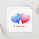 Minimalist Romantic I Love You. Hand drawn watercolor Red and blue heart. Matching items available.