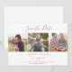 This minimalist rose 3 photo template save the date card is perfect for a simple wedding. The modern romantic design features classic rose gold blush pink and white typography paired with a rustic yet elegant calligraphy with vintage hand lettered style. Customizable in any color. Keep the design simple and elegant, as is, or personalize it by adding your own graphics and artwork.