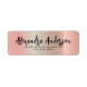 Trendy personalized return address label design featuring a rose gold metallic background with your name written in a modern script. The text is fully customizable.