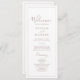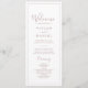 This minimalist rose gold wedding program is perfect for a simple wedding. The modern romantic design features classic rose gold and white typography paired with a rustic yet elegant calligraphy with vintage hand lettered style. Customizable in any color. Keep the design simple and elegant, as is, or personalize it by adding your own graphics and artwork. Include the name of the bride and groom, the wedding date and location, thank you message, order of service, bridal party and an optional "in loving memory" memorial.