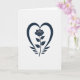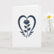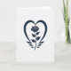 This design shows a dark navy-blue heart shape with a matching navy rose growing up the center. The rose has a slim stem with a few curved leaves near the base, and the bloom opens at the top like it’s gently unfolding. Inside the petals, thin white lines trace the folds, adding depth while keeping the look simple. Everything sits on a plain white background, so the deep blue stands out and feels calm and steady. There isn’t any text on the front, which makes the rose-and-heart image feel like the whole message. The blue color can feel like loyalty and quiet closeness, not just romance, so it works for a partner or a dear friend 🥰. It’s a meaningful way to say “I care about you” without needing many words ❤️, and it’s a sweet card for sharing Valentine’s Day feelings.