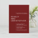 Plain white envelopes are included with paper invitations and will come to fit the invitation size you select. If you don’t need the envelopes, you may choose to not receive them by selecting the dropdown below "Envelopes" and choosing "None." If you’d like to have a design on your envelopes, you can browse all of these available envelopes to find the design that complements your Minimalist Ruby Red Isolated Names Photo Wedding Invitation.
