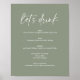 Minimalist Sage Green Boho Wedding Drink Bar Menu Poster. The text 'let's drink' is not editable. Can be used for weddings, bridal showers, baby showers, etc.