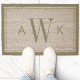 Minimalist Sage Green Border Modern Monogram Fiber Doormat