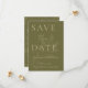 Announce your special day with this elegant, minimalist sage green save-the-date card featuring refined typography and a subtle botanical floral design. The rich olive background paired with soft cream lettering creates a timeless and sophisticated aesthetic perfect for modern couples.