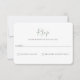 Simple sage green wedding RSVP cards. Minimalist design style features, simple script in sage green. Back of card, shown in sage green color, features two template text lines for names and date. Part of a collection.