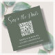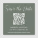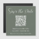 Customizable minimalist sage green and white Save the Date magnet. Invite your guests to view your wedding website with the QR code featured on this design. Generate your own unique QR code that links your guests to your wedding website, using the easy to follow instructions via "personalize this template".