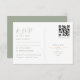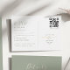 Modern sage green wedding RSVP postcard featuring elegant typography, meal options, and a built-in QR code for quick digital responses. The clean design includes a gold rope heart detail and space to personalize your return address. A stylish and convenient way to collect guest responses!