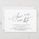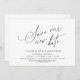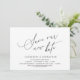 Change the date announcement and invitation card. This is the Wedding party invitation Rescheduled (postponed / postponement) card (Save the new date), in the modern minimal simple clean design themed, Black font.
