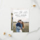 Modern and Elegant Handwritten Script Photo Save the Date Wedding Card. The save the date invitation card includes a chic and stylish typography with a simple and minimalist design on a white background that you can add your customized engagement photograph picture to.